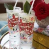 Beautiful design is amazingly rendered using organic inks of unlimited vibrant colors plus silver and gold. The high quality 15-ounce frosted glass is dishwasher safe. A collage of all things Kentucky Derby!