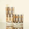 Woodmont was designed by Gay Fad Studios Art Director, Bill (Wilhemena) Butcher, in 1963, but the design has never been produced on glass until now. In 2023, Butcher’s family collaborated with the new Gay Fad Studios to resurrect her artwork and produce it on glass as intended. Each design of the Lost Collection originated with a hand-drawn or painted design and was meticulously adapted to today’s modern glass styles. Its classic leaf styling in black ceramic and 24k gold makes Woodmont a timeless treasure.