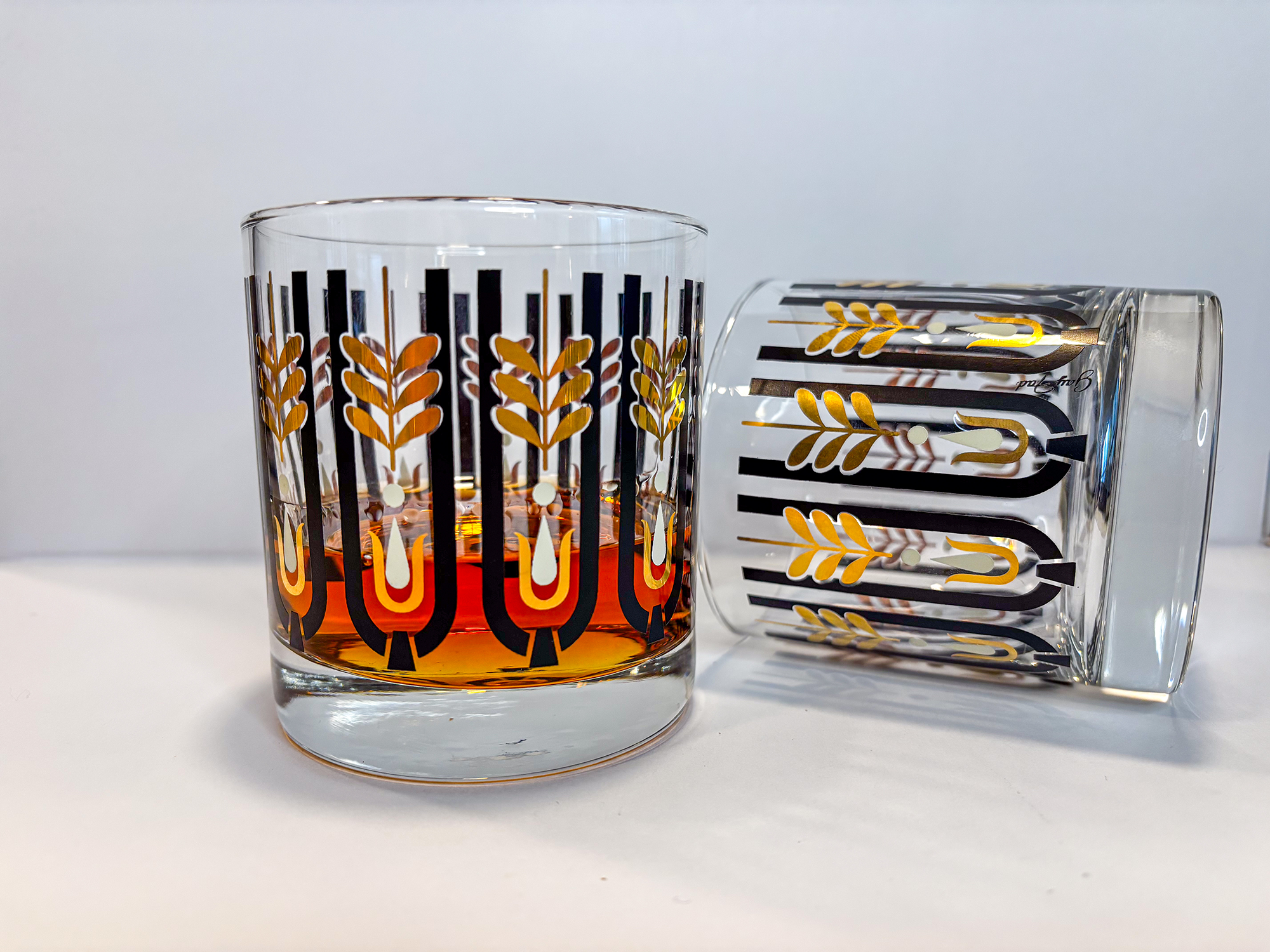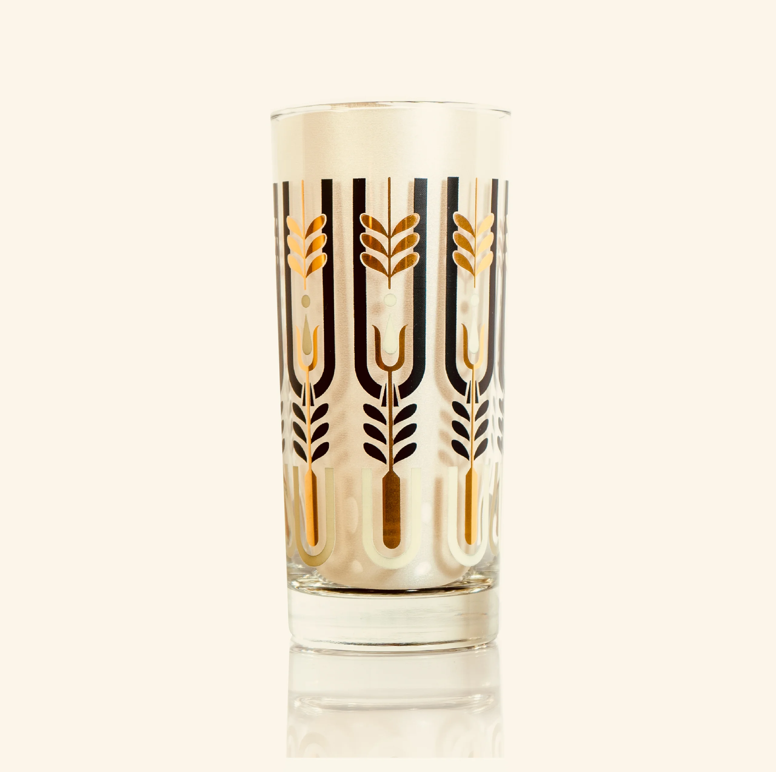 Woodmont was designed by Gay Fad Studios Art Director, Bill (Wilhemena) Butcher, in 1963, but the design has never been produced on glass until now. In 2023, Butcher’s family collaborated with the new Gay Fad Studios to resurrect her artwork and produce it on glass as intended. Each design of the Lost Collection originated with a hand-drawn or painted design and was meticulously adapted to today’s modern glass styles. Its classic leaf styling in black ceramic and 24k gold makes Woodmont a timeless treasure.